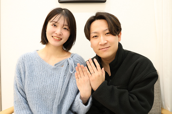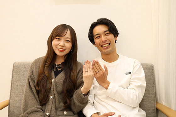 デザインがある程度決まっていて、そのデザインに沿った指輪を提案していただいて、この指輪に決定しました。