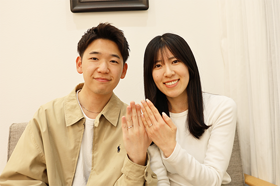 シンプルな結婚指輪をネットで検索していたところ、プラチナでダイヤモンドが入っていてリーズナブル価格だったので来店しました。