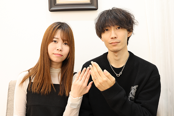 プラチナのシンプルなデザインと考えていましたが、桜ピンクのデザインを見せていただき、着けてみると色とデザインがとても可愛いので決めました。