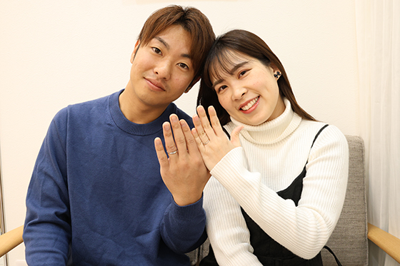 店頭ではたくさんの指輪を試着でき、落ち着いた接客でのんびりと楽しく結婚指輪を選ぶことができました。