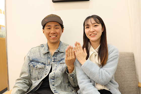 色々なデザインの指輪を試しましたが、ちょうど良い幅と厚みで、お互い少しデザイン入っているこの指輪がとても気に入り決定しました。