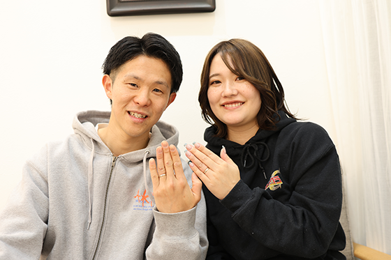 お互い厚みのあるしっかりとしたシンプルなデザインが気に入り、決定しました。