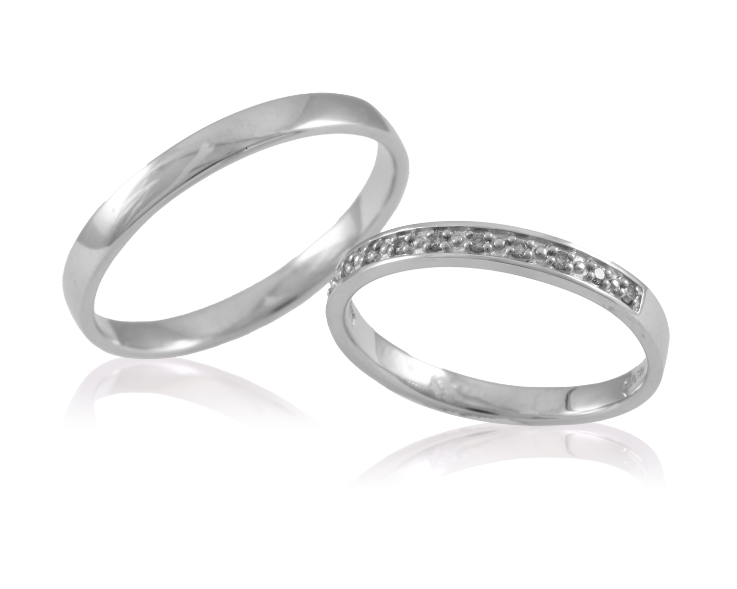 シャープなストレートラインに独特の角張ったデザイン。レディースには10石のダイヤモンドが輝き、特別な輝きの指輪。